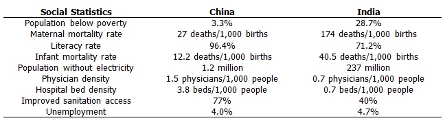 In overall social sector, China is not only improving but also overshadowing India on all indicators including maternal mortality rate, infant mortality rate, literacy rate, physicians’ density, hospital bed density, improved sanitation access and unemployment. China created nearly 9.74 million jobs in urban areas in first eight months of the year and reported the lowest unemployment rate since 2012.